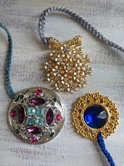 I make all of my bookmarks from little found treasures, deconstructed vintage jewelry, and random beads and baubles. If you have a special little treasure or bauble that you would like to have customized into a bookmark please contact me at gigi.jacobst@gmail.com and we can figure out the details like additional beads, baubles, and thread color.